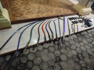 “Setiba di lokasi, anggota mendapati sekelompok anak sedang pesta minuman tuak. Setelah dilakukan pemeriksaan, ditemukan sejumlah senjata tajam yang disembunyikan di belakang rumah dan diduga akan digunakan untuk tawuran,” terang Kapolres.
